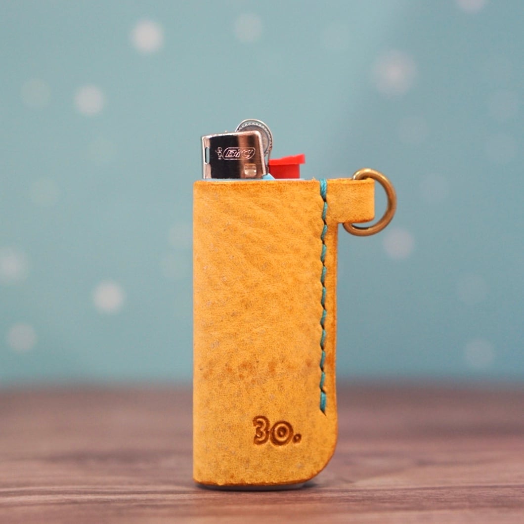 タンニン鞣しのレザーを使用した、Bicライター(スリムサイズ=コンビニ等で手に入りやすいサイズです)にぴったりのライターケース。
